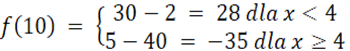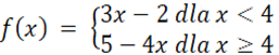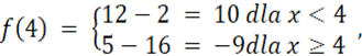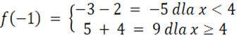 Aby obliczyć wartość funkcji dla danego argumentu musimy podstawić do wzoru funkcji tą liczbę zamiast x. Należy rozpatrzeć jaki argument odpowiada jakiemu wzorowi.