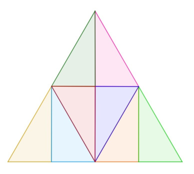 Dokonaj podziału trójkąta równobocznego na osiem trójkątów przystających.