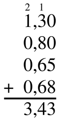 1,3 + 0,8 + 0,65 + 0,68 = 3,43 kg