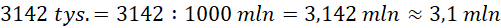 W tym zadaniu musisz przeliczyć tysiące na miliony.