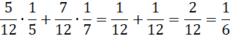 Oblicz część, którą stanowiły owce, odejmując ułamek kóz od 1. Następnie pomnóż każdy z ułamków ilości zwierząt przez ilość czarnych osobników wśród nich i dodaj je do siebie. Otrzymany wynik będzie ułamkiem czarnych zwierząt.