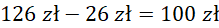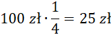 Na początku oblicz cenę krawatu w środę – odejmij wartość obniżki od ceny początkowej. Następnie oblicz wartość obniżki czwartkowej mnożąc cenę ze środy przed podany ułamek.