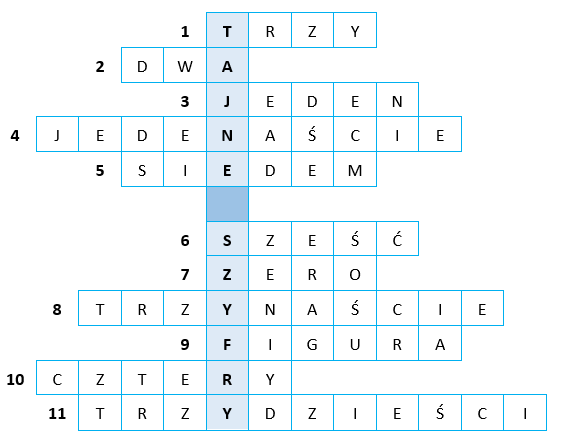 11. Liczba złożona, której dzielnikami mniejszymi od niej są: 1, 2, 3, 5, 6, 10, 15 – TRZYDZIEŚCI