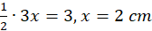 W pierwszym kroku policz pole całego kwadratu , następnie podziel pole w stosunku 1 : 2, czyli 3cm:6cm. Podstaw do wzoru na pole trójkąta odpowiadające mu pole: .