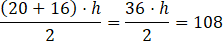 Wyobraź sobie dwa trapezy prostokątne. Składamy je ramieniem bez kątów prostych i powstaje prostokąt. Jego długość to suma dwóch podstaw, a szerokość to wysokość trapezu. Oblicz ją korzystając z jego pola powierzchni. Podstaw dane do wzoru na pole figury i poszukaj brakującą wartość metodą prób i błędów.