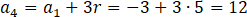 Oblicz czwarty i drugi wyraz ciągu arytmetycznego. Zauważ, że czwarty jest sumą wartości pierwszego wyrazu i potrojonej różnicy, a drugi sumą pierwszego wyrazu i różnicy.