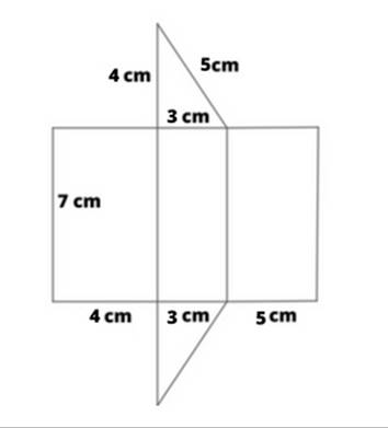 Siatka graniastosłupa prostego trójkątnego zawiera trójkąt prostokątny o wymiarach 3 cm, 4 cm i 5 cm, a długość krawędzi bocznych wynosi 7 cm. Rysunek wykonaj za pomocą ekierki i linijki.