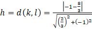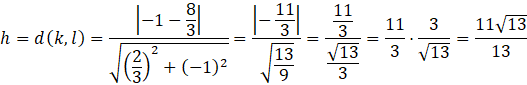 Obliczam odległość między prostymi, która jest równa wysokości trapezu: