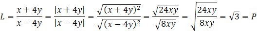 – Przekształć lewą stronę tezy, nakładając na licznik i mianownik ułamka wartość bezwzględną (zmienne są nieujemne, więc ich suma również; ponieważ x > 4y, to x – 4y > 0).