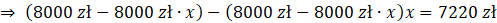 W tym zadaniu musisz obliczyć procent, o który obniżano cenę telewizora, wiedząc, że po dwukrotnej obniżce cena z 8000 zł spadła do 7220 zł.