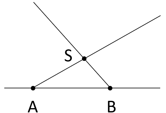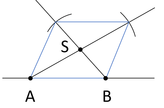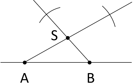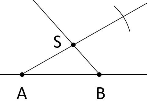 Odmierz cyrklem długość odcinka AS, a następnie wbij cyrkiel w punkt S i odłóż ten odcinek po przeciwnej do punktu A stronie prostej AS.
