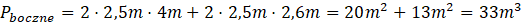 Oblicz, ile trzeba kupić prostokątnych desek o wymiarach 20 cm x 2,5 m, aby położyć je pionowo na wszystkich ścianach kuchni o kształcie graniastosłupa z prostokątną podstawą o wymiarach 2,6 m x 4 m i wysokości 2,5 m.