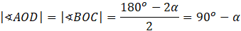 Trójkąty AOD, DOC i BOC tworzą kąt półpełny, przy czym kąty AOD i BOC są równe. Na tej podstawie oblicz ich miarę.