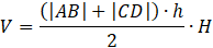Zapisz wzór na objętość ostrosłupa o podstawie trapezu ABCD.