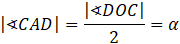Zauważ, że kąt CAD jest kątem wpisanym opartym na tym samym łuku co kąt środkowy DOC, więc jego miara jest od niego dwukrotnie mniejsza.