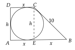 Zauważ, że trójkąt CEB jest prostokątny. Zapisz zależności jego boków korzystając z twierdzenia Pitagorasa. Skorzystaj również z tego, że jeśli w czworokącie można opisać okrąg, to suma jego przeciwległych boków jest równa.