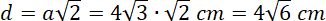 Średnica to przeciwprostokątna tego trójkąta – będzie mieć długość: