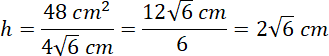 Teraz możesz obliczyć wysokość, korzystając znowu z pola trójkąta: