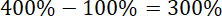 Nowe pole stanowi 400% poprzedniego. Poprzednie pole jest punktem odniesienia, wynosi więc 100%. Oblicz różnicę – o ile procent wzrosło pole: