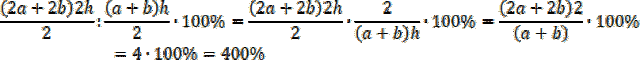 Podstawy i wysokość zwiększ dwukrotnie. Oblicz jaki procent poprzedniego pola stanowi nowe pole: