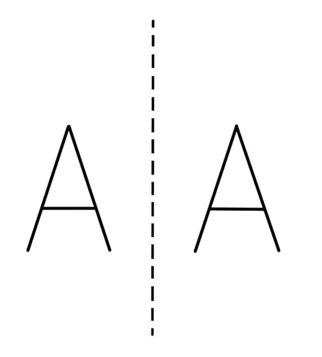 Zapisz literę A, następnie wyznacz prostą, względem której chcesz wyznaczyć symetrię. Przenieś każdy odcinek prostopadle do prostej, zachowując przy tym takie same odległości od prostej.