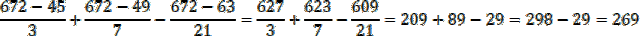 Musisz dodać wszystkie liczby podzielne przez trzy oraz przez siedem, ale odjąć te, które są podzielne przez 21, ponieważ znajdują się one w obu grupach i byłyby zliczone podwójnie. Znajdź pierwszą i ostatnią z liczb naturalnych w tym zbiorze, które są podzielne przez 3, 7 i 21. 672 jest podzielne przez 3, 7 i 21 – jest to ostatnia liczba ze zbioru, którą bierzesz pod uwagę.
