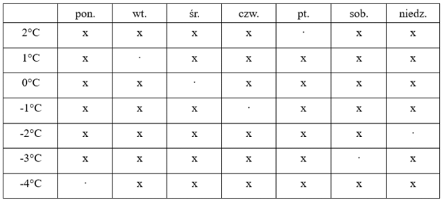 Temperatury w piątek i niedzielę to liczby przeciwne.