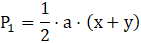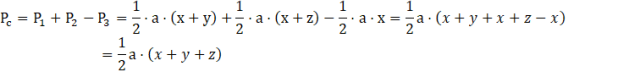 . Następnie od sumy pól tych dwóch trójkątów musisz odjąć pole trójkąta o podstawie a i wysokości x, ponieważ zostało wliczone dwa razy przy obliczaniu pól trójkątów o podstawach a oraz wysokościach