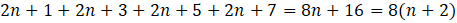 Sprawdź i uzasadnij czy suma czterech kolejnych liczb nieparzystych jest podzielna przez 8.