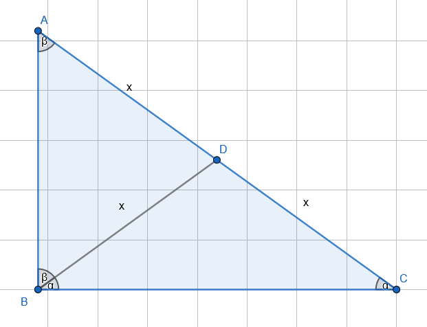 Udowodnij, że jeśli długość środkowej trójkąta to połowa boku, do którego została poprowadzona, to dany trójkąt jest prostokątny.