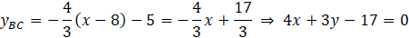 Wyznacz równania ogólne prostych, w których zawarte są boki trójkąta ABC, a następnie oblicz odległość punktu S od każdego z nich.