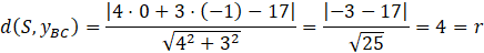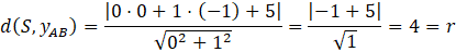 Punkt S jest równoodległy od boków trójkąta o długość równą promieniowi, więc jest środkiem okręgu wpisanego w trójkąta ABC