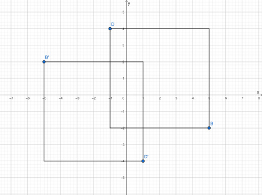 Wyznacz pole części wspólnej kwadratu ABCD, którego dwa wierzchołki są punktach B(5, -2) i D(-1, 4) i kwadratu A’B’C’D’, który jest symetryczny do pierwszego względem początku układu współrzędnych.