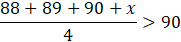 Określ ilość liczb dwucyfrowych, które po dołożeniu do zestawu liczb 88, 89, 90 spowodują, że średnia nowego zestawu jest większa niż 90.