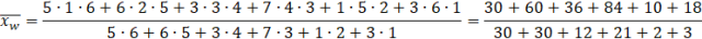 Aby w tym zadaniu obliczyć średnią ważoną należy każdą wartość ze zbioru danych pomnożyć przez jej wagę oraz przez częstość jej występowania, następnie zsumować wszystkie przemnożone wartości i podzielić przez sumę wag pomnożonych razy częstość ich występowania.