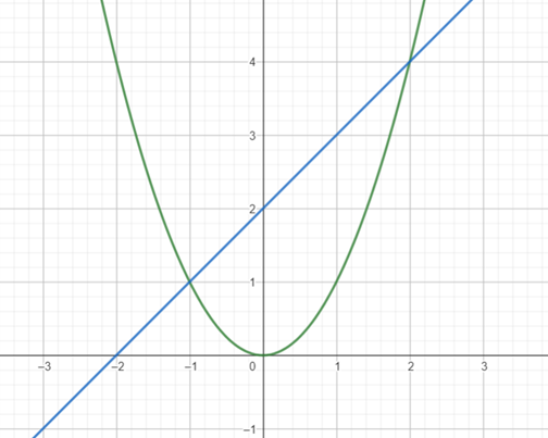 Punkt przecięcia to (2, 4).