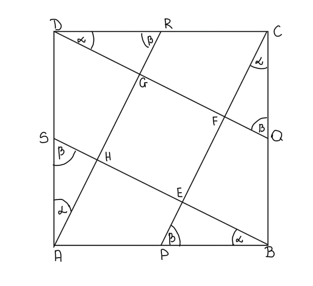 Punkty P, Q, R, S są środkami boków kwadratu ABCD