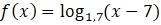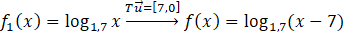 Zauważ, że funkcja f(x) to funkcja f1(x) = log1,7x przesunięta o wektor [7, 0] (pamiętaj, że przesuwając o wektor funkcję, od argumentu funkcji, czyli x odejmuje się wartość pierwszej współrzędnej, a nie dodaje, więc odczytując ten wektor musisz zmienić znak na przeciwny).