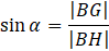 Sinus kąta α to w tym przypadku stosunek długości odcinka |BG| do |BH|.