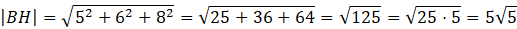 Trójkąt BHG jest trójkątem prostokątnym o kącie prostym przy wierzchołku G. Jedną z przyprostokątnych tego trójkąta jest krawędź GH która ma długość 5. Drugą z przyprostokątnych jest odcinek BG, który jest jednocześnie przeciwprostokątną trójkąta prostokątnego BCG. Z twierdzenia Pitagorasa: