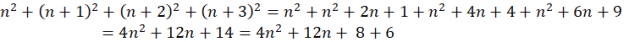 Suma kwadratów czterech kolejnych liczb naturalnych daje resztę 6 przy dzieleniu przez 8.