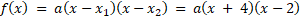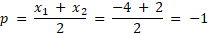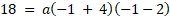 Zauważmy, że skrajne elementy przedziału są miejscami zerowymi tej funkcji, więc możemy zapisać jej postać iloczynową. Następnie obliczamy p jako średnią miejsc zerowych. Współczynnik a obliczamy podstawiając współrzędne wierzchołka do wzoru funkcji.