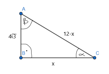 W tym zadaniu należy obliczyć miary kątów trójkąta prostokątnego, w którym suma długości przeciwprostokątnej i jednej z przyprostokątnych wynosi 12, a druga przyprostokątna ma długość równą 4√3.