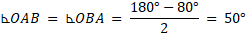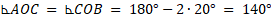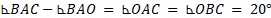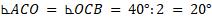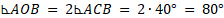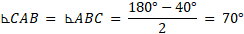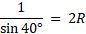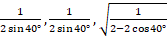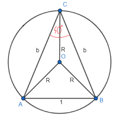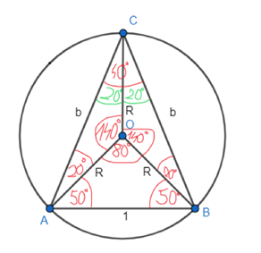 W okręgu o środku O umieszczono trójkąt ABC, gdzie długość boku AB wynosi 1, długość boku AC jest równa długości boku BC, a miara kąta ACB wynosi 40°. Rozwiąż trójkąty ABC, ABO i AOC.