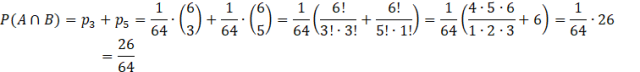 Oblicz prawdopodobieństwo iloczynu zbiorów A i B, czyli prawdopodobieństwo wylosowania liczby 3 lub 5.