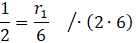 W tym zadaniu zaczynamy od tego, że skoro promienie są prostopadłe do jednego z ramion, to możemy zastosować tutaj twierdzenie Talesa. Układamy zatem pierwsze równanie z następujących stosunków, stosunek odcinka od wierzchołka A do promienia