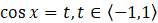 Skorzystaj z podstawienia. Zauważ, że wartość cosinusa musi zawierać się w przedziale