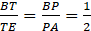 Dowodzimy równoległości TP i EA. T i P to środki odcinków BE i BA, zatem: