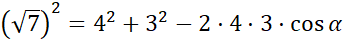 7 = 16 + 9 – 24 cos α