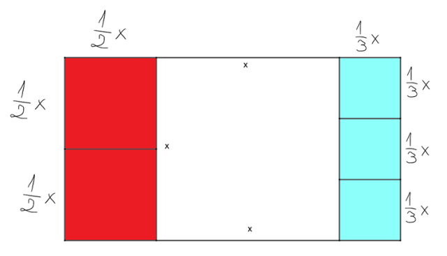 Prostokąt ABCD został podzielony na 6 kwadratów: jeden duży, dwa średnie i trzy małe, zgodnie z przedstawionym na rysunku podziałem. Wykaż, że powierzchnia dużego kwadratu jest większa niż połowa powierzchni prostokąta ABCD.